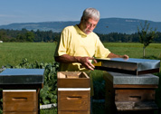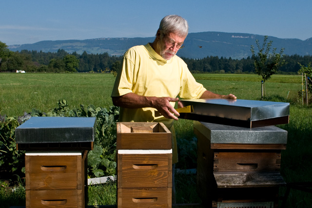 Es steht viel auf dem Spiel. Dieses verantwortungsvolle Handeln ist umso dringlicher, als die Bienenvölker ja nicht allein für die Produktion des Honigs zuständig sind, sondern mit bis zu 90 Prozent ihrer Arbeitskraft das Bestehen unserer vielfältigen Nahrungskette sichern. Im Kanton Bern gibt es verglichen mit der Fläche mit 25 608 Bienenvölkern (2010) die höchste Dichte an Bienenvölkern in ganz Europa. Die Schweiz führt die europäische Länderliste an. Im «Kalender des Schweizer Imkers 2011» werden für das Jahr 2010 aktuell 115 386 Bienenvölker ausgewiesen, Tendenz sinkend. Daselbst ist auch diese Zahl notiert: 14 010 Imker als Mitglieder des «Vereins deutschschweizerischer und rätoromanischer Bienenfreunde (VDRB)». Marco Paroni schätzt, dass darunter höchsten 3-5 Prozent Berufsimker sind, der gigantisch grosse Rest betreibt die Bienenzucht als liebgewonnenes traditionelles Hobby. |