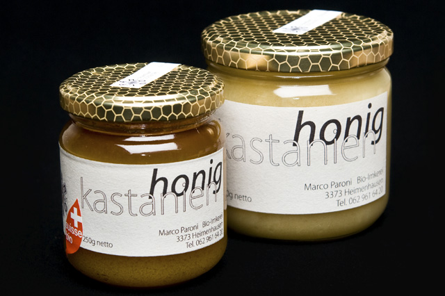 Nimmt in bestimmten Jahren der Anteil an Lindenhonig im Kastanienwald zu, nennt Marco Paroni seinen Kastanienhonig «Tessiner Honig». Er ist dann um einiges milder und auch etwas heller als der reine Kastanienhonig.