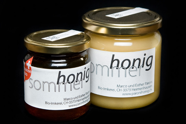 | Paronis Bio-Sommerhonig  Marco Paroni hat ja schon aus vielen seiner Honigtöpfe zufrieden gekostet. Jahrgang für Jahrgang. Aber beim neuen Sommerhonig leuchten seine Augen, als wäre es das erste Mal. Er ist vom reichen Aroma entzückt. Einen solchen Honig gebe es wohl kaum anderswo in der Schweiz, ist er überzeugt. Solche Begeisterung und Behauptung will bei ihm als selbstkritischen Geist etwas heissen.  Das liege halt am wunderbaren Standort hier in Heimenhausen, gibt der Imker das Kompliment gleich an die Natur weiter. An die Wälder und deren einzigartige Waldflora rundherum. Da stehen nicht nur Weiss- und Rottannen, sondern auch viele Laubbäume – Linden, Ahorn, wilde Kirschen. Im Unterholz blühen Brombeeren und Himbeeren. Entsprechend reich an Aromen und Vielfalt ist der Nektar, den Paronis Bienen in die Waben fliegen – und dort zu Paronis Sommerhonig reifen lassen.