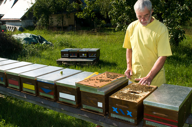Tabu Brutraum. Im Wirtschaftsvolk gibt es den Brutraum. Hier entwickelt sich das Volk. Teilweise ist der Brutraum auch Futterraum. Dieser Bereich gehört für Marco Paroni allein dem Volk: «Im Brutraum hat der Imker nichts verloren. Er muss höchstens dafür sorgen, dass dort immer genug Futter – und damit meine ich eigener Honig – vorhanden ist. Trotzdem gibt es Imker, die auch die Brutkästen plündern und die Bienen dann als Ersatz mit Zuckerwasser nachfüttern.» Wissenschaftliche Studien belegen: Eine Biene, die mit dem selbst produzierten Honig aufgezogen und gefüttert wird, ist viel widerstandsfähiger als jene, die mit Zuckerwasser gefüttert wird.